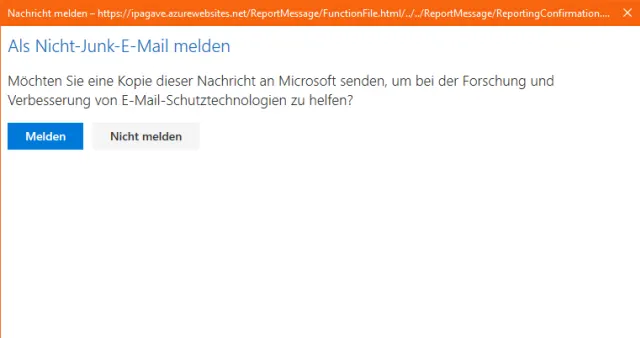 Diese Mail ist kein Spam; das lässt sich bei installierter «Nachricht melden»-Erweiterung via Nachricht melden/Keine Junk-E-Mail an Microsoft melden