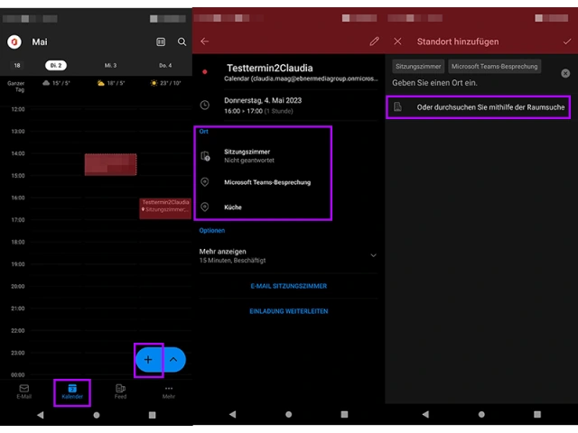 Mit der jüngsten mobilen Outlook-Version ist es einfacher geworden, einem Termin mehrere (Sitzungs-)Räume zuzuordnen. So gehts.