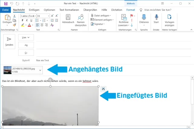 Es gibt grundsätzlich zwei Arten, mit einer Mail ein Bild mitzuschicken.