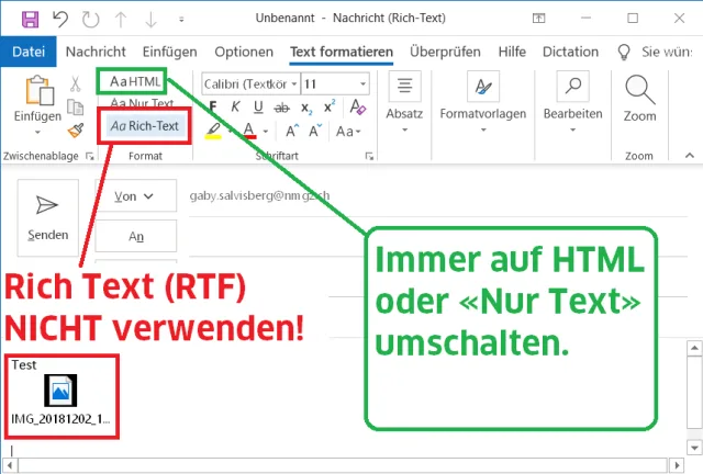Outlook: Niemals das Rich-Text-Format verwenden – nehmen Sie HTML oder «Nur Text»