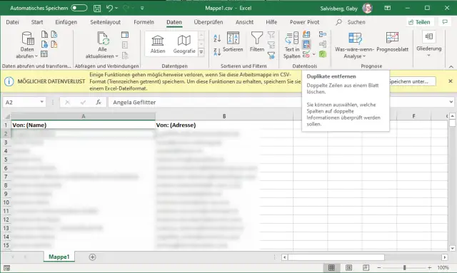 Die Mailadressen sind in Excel angekommen und Sie haben die Duplikate entfernt