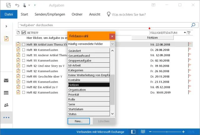 Platz schaffen: Soll z.B. in der Aufgabenliste eine Spalte weg, schnappen Sie sich deren Spaltentitel direkt in der Aufgabenliste und ziehen Sie diese ins Fenster Feldauswahl hinein. Die Spalte verschwindet. Entfernen Sie so alle Spalten, die Sie nicht benötigen.