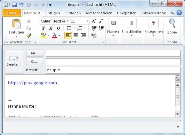 Outlook: Hyperlink mit geschweifter Klammer