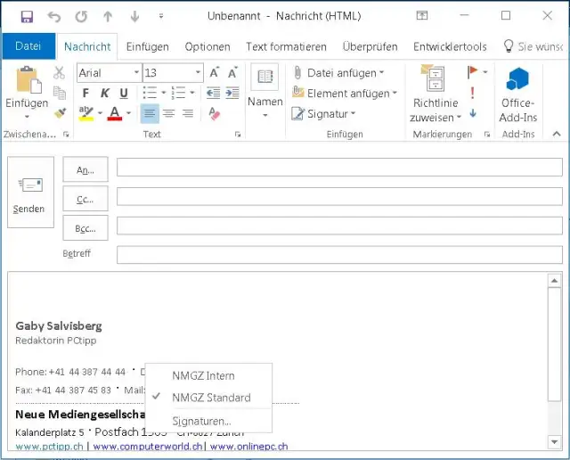 Sofern Sie mindestens zwei verschiedene Signaturen eingerichtet haben, können Sie fortan beim Schreiben der Mail mit zwei Klicks von der einen auf die andere Signatur umschalten.