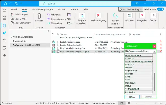 Ich trage zum Beispiel alle «Deadlines» meiner PCtipp-Heftartikel und einiger Onlineartikel in Outlook als Aufgaben ein. Damit sehe ich, wann ich sie abzuliefern habe, und kann meine Arbeitswoche planen.Aufgaben erstellen