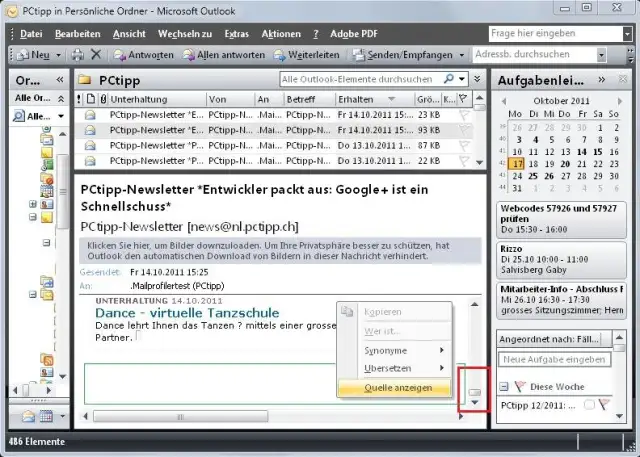 Outlook: Kopfzeilen und HTML-Quelltext anzeigen
