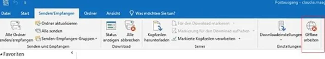 - Klicken Sie auf den Tab Senden/Empfangen und dann auf Offline arbeiten.