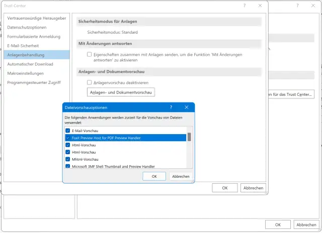 Outlook: PDF-Vorschau wieder aktivieren