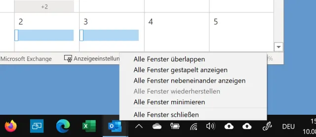 Sie öffnen in Outlook den Kalender und klicken auf Neuer Termin. Wie in der Taskleiste beim Drüberfahren übers Outlook-Symbol zu sehen ist, gibt es irgendwo ein Fenster zum Eintragen des Termins. Aber irgendwie ist es wohl ausserhalb des Bildschirms zu finden, denn auch wenn Sie via unten via Klick auf die Taskleisten-Vorschau oder via Alt+Tab zu ihm wechseln wollen, erscheint es einfach nicht. Dasselbe Problem könnte auch das Outlook-Hauptfenster betreffen, die Mail-Fenster, Aufgaben-Fenster oder Kontakt-Fenster.