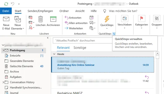 Outlook: Schnellantwort per QuickStep einrichten