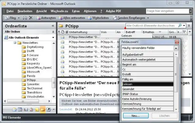 In Outlook 2007 funktioniert das ähnlich. Klicken Sie mit der rechten Maustaste auf einen der verbleibenden Spaltentitel, zum Beispiel auf «Betreff». Gehen Sie im Kontextmenü zu Feldauswahl.