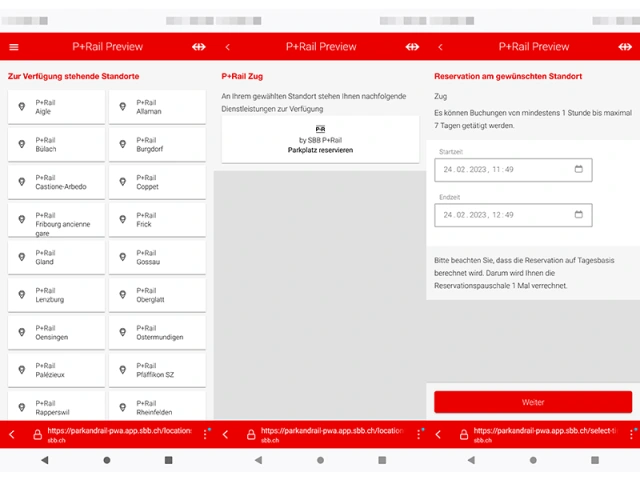 Sind Sie zeitlich knapp dran, wollten wie üblich das Auto am Bahnhof stehen lassen und dann mit dem ÖV in die Stadt? Da schnappt ihnen jemand den letzten Parkplatz weg. Ärgerlich! Die mühsame Parkplatzsuche zu Stosszeiten wird entspannter, wenn Sie in der P+Rail-App der SBB einen Parkplatz im Voraus reservieren. Denn neu kann man direkt aus der P+-Rail-App auf die Reservations-Webseite gelangen und einen der 30 Reservationsstandorte wählen.