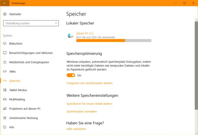 Speicheroptimierung: Diese Funktion bereinigt automatisch den Papierkorb sowie die temporären Dateien