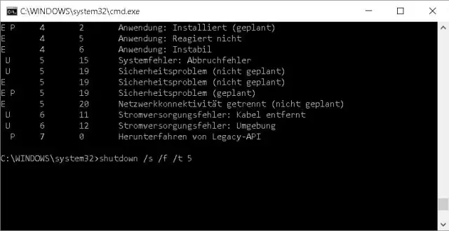 /t 5: Beginne das Herunterfahren in 5 Sekunden.