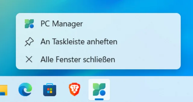 Tipp: Heften Sie das Icon des «PC Manager» an der Taskleiste an, damit Sie das Programm schnell öffnen können, wenn Sie es brauchen. Klicken Sie mit rechts auf das Icon, wenn das Programm offen ist, und wählen Sie An Taskleiste anheften, Bild 3.
