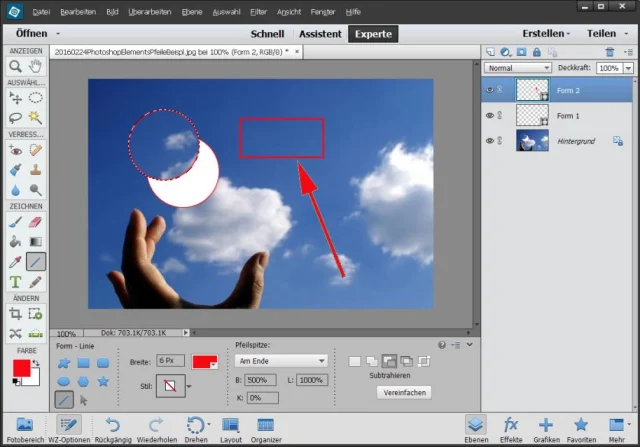Pfeile, Kreise und Rahmen zeichnen in Photoshop Elements