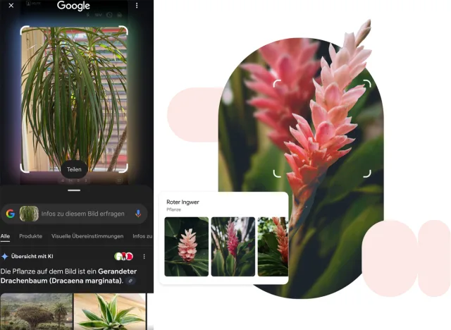 Quelle: PCtipp.chDie Anwendung Google Lens ist kein Spezialist für Pflanzen, sondern ein visuelles Suchwerkzeug für vieles: Es identifiziert Pflanzen, Tiere, Produkte, Texte etc. Der Vorteil: Sie müssen unter Android nicht extra eine App herunterladen, da Google Lens in vielen modernen Smartphones direkt in der Kamera oder in der Google-App integriert ist, Bild 8. Auf einigen neueren Android-Smartphones können Sie auch Circle to Search nutzen, indem Sie die (mittlere) Navigationstaste einige Sekunden gedrückt halten.