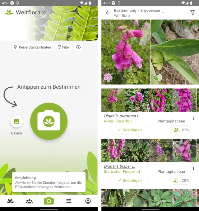 ● Prüfen Sie das Ergebnis gegen. Zum Beispiel mit einer weiteren App oder einem Bestimmungsbuch.