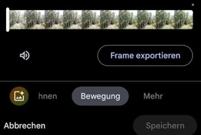 Quelle: PCtipp.chAktuelle Android-Handys nehmen nicht mehr nur unbewegte Standfotos auf, sondern erstellen auch Live-Aufnahmen. Das sind kurze Filmchen, aus denen Sie den besten Moment auswählen können. Auf iPhones gibt es die Funktion schon länger. Wenn Ihr Handy die Funktion unterstützt, sehen Sie neben den bisher vorgestellten Funktionen auch eine Schaltfläche mit dem Namen Bewegung. Tippen Sie darauf und wählen Sie den gewünschten Moment aus. Tippen Sie auf Frame exportieren, um eine Kopie abzuspeichern, Bild 12. Diese finden Sie danach in der «Fotos»-App.