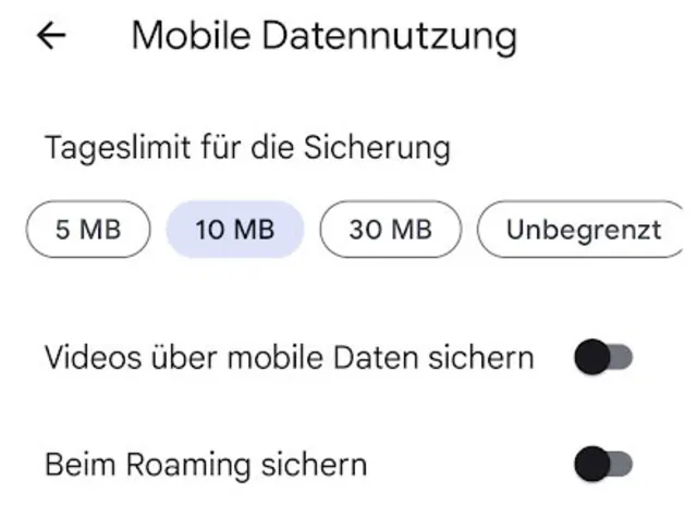 Bild 15: Hier legen Sie ein Limit für die Datensicherung via Mobilfunk fest