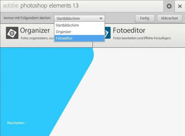 Photoshop Elements: Organizer oder Fotoeditor gezielt aufrufen