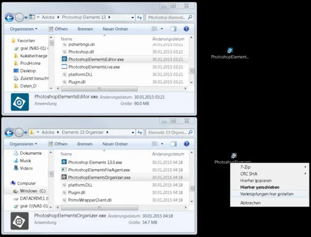 Direktverknüpfungen zu Photoshop Fotoeditor oder Organizer erstellen