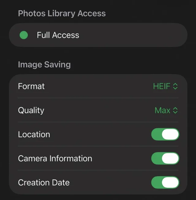 Quelle: PCtipp.chBeim ersten Start benötigt Pickshot Zugriff auf die Fotos-Mediathek, um die Videos zu lesen. Danach sollten die Einstellungen mit einem Tippen auf das Zahnrad links oben justiert werden: Idealerweise werden das HEIF-Format bei maximaler Qualität verwendet und alle Kameradaten eingebunden, Bild 1.