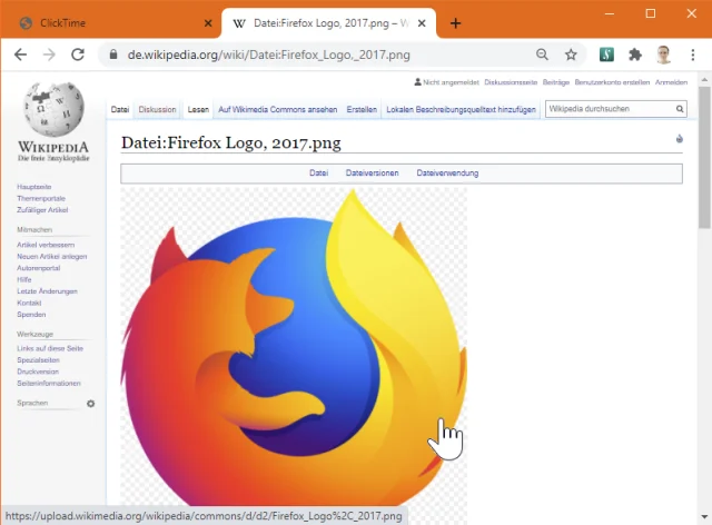 Das kleine Zeichenprogramm MS Paint hingegen, das seit Jahrzehnten mit Windows mitkommt, kann mit Transparenz gar nichts anfangen. Probieren Sie es mal aus: Öffnen Sie zum Beispiel die Wikipedia-Seite dieses Firefox-Logos in einem Browser. Fahren Sie per Maus über das Logo, erscheint unmittelbar ums Logo herum ein schachbrettartiges Muster. Die meisten Anwendungen, die Transparenz beherrschen, benutzen dieses Mittel, um Ihnen anzuzeigen, welche Bereiche des Bildes transparent sind.