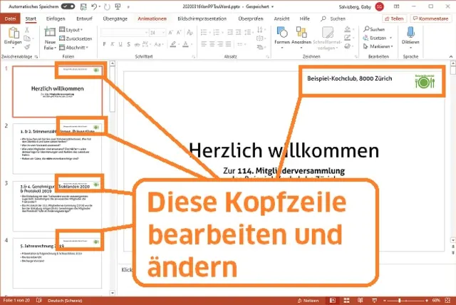 PowerPoint: Kopfzeile bearbeiten