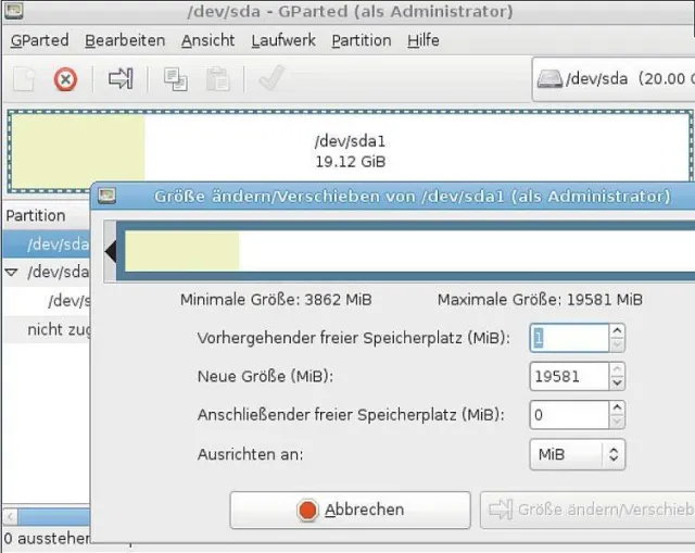 Screen 5: Nur für fortgeschrittene Nutzer: das Partitions-Tool GParted