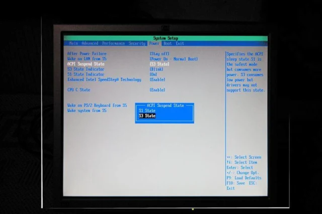Das System kennt mehrere Betriebszustände. Der typische Arbeitszustand nennt sich S0. Als S1 wird der erste Stromsparmodus bezeichnet. Aus diesem wacht das System sekundenschnell auf. S2 wird selten verwendet. Im Modus S3 versorgt der PC fast nur den Arbeitsspeicher mit Spannung und speichert den Systemzustand in diesem ab. Noch einen Schritt weiter geht der Ruhezustand S4: Dabei schaltet der PC bis auf den USB-Controller alles ab. Der Inhalt des Arbeitsspeichers wird vorher in die Datei hyberfil.sys geschrieben. Im Zustand S5 ist der Rechner ganz ausgeschaltet.