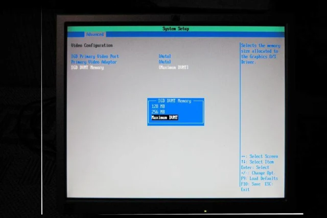 Quelle: PCtipp.chHaben Sie keine separate Grafikkarte, sondern einen Grafikchip auf dem Mainboard oder im Prozessor (ein Beispiel sind die Intel-Prozessoren Core i3/i5), können Sie diesen per BIOS optimieren. Die Idee: Weisen Sie dem Grafikchip möglichst viel Arbeitsspeicher zu. Dadurch kann er auch aufwendige Grafiken schneller berechnen. Wählen Sie dazu im BIOS-Menü Advanced/Video Configuration/IGD DVMT Memory den Maximalwert. Je nach Arbeitsspeichergrösse variiert der Wert, der sich dem Grafikchip zuteilen lässt, Screen 4.