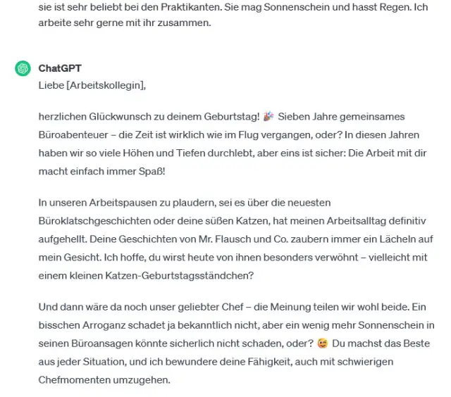 Bild 6: Auch als Inspiration für Glückwunschkarten kann ChatGPT dienen