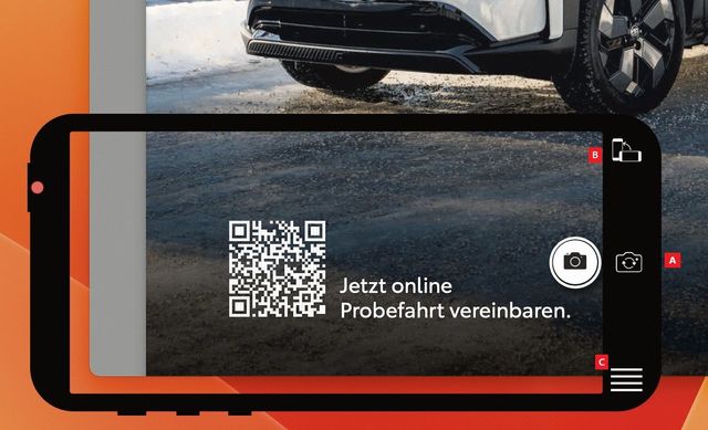 In diesen Fällen wird QR Capture zum wertvollen Helfer in Form eines virtuellen Smartphones. Wahlweise wird die aktuelle Webcam verwendet – oder ein Code auf dem Display abgelichtet, also zum Beispiel in einem PDF. Die Bedienung wirkt bestens vertraut, auch dank des «Kamera-Umschalters», Bild 1 A. Die Anzeige lässt sich auch in die Vertikale drehen B, während der gerippte Anfasser C, zu den bereits erfassten Codes führt.