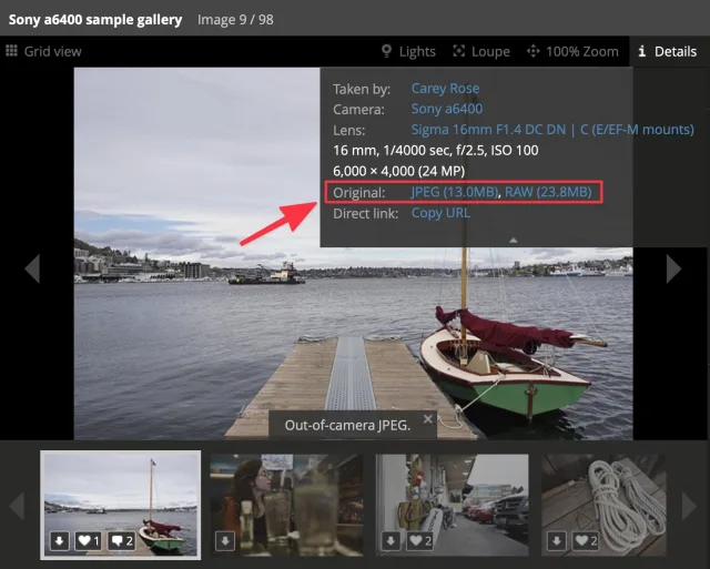 Fremde Fotos. Wenn Sie die Tipps hier und jetzt nachvollziehen möchten, aber keine RAW-Dateien zur Hand haben, hilft das Internet. Die populäre Website dpreview.com publiziert zu den Kamera-Tests auch RAW-Dateien der Beispielfotos, die sich frei herunterladen lassen. So finden Sie zum Beispiel Aufnahmen, die mit der Sony a6400 gemacht wurden, in dieser Sample Gallery. Rufen Sie ein Foto auf und laden Sie es als RAW: