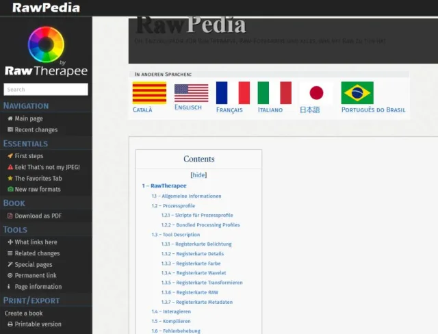 Wenn Sie mehr über die Bearbeitung von Fotos mit «RawTherapee» erfahren möchten, gehen Sie auf RawPedia (auf Deutsch verfügbar). Hier finden Sie Informationen, wie das Tool funktioniert. Eine deutschsprachige Anleitung finden Sie über diesen Link.