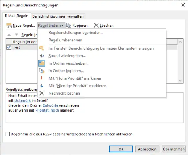 Regeln in Outlook