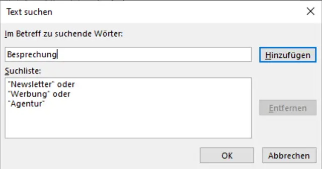 Nebst Regeln sind auch Filter praktisch, um E-Mails schnell automatisch zu sortieren. Sie können Ihre E-Mails nach einem einzelnen Wort oder einer Phrase durchsuchen. Outlook bietet eine Reihe integrierter Suchfunktionen.