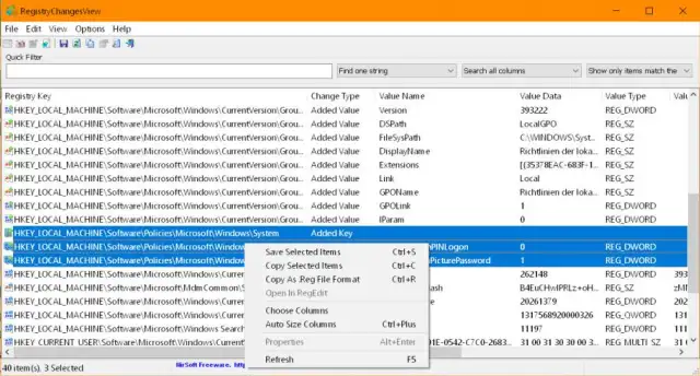 Quelle: PCtipp.chDrücken und halten Sie die Ctrl-Taste (Strg-Taste) und klicken Sie nacheinander all jene Zeilen an, die Sie interessieren bzw. die Sie zwecks weiterer Nachforschungen in eine Textdatei schreiben wollen. Sind alle gewünschten Zeilen markiert, lassen Sie die Ctrl-Taste (Strg-Taste) los, klicken mit rechts auf einen der Einträge und wählen Save Selected Items. Das schreibt die Einträge in eine Textdatei im RegistryChangesView-Ordner. Öffnen Sie ihn und bearbeiten Sie die Textdatei nach Gutdünken weiter.