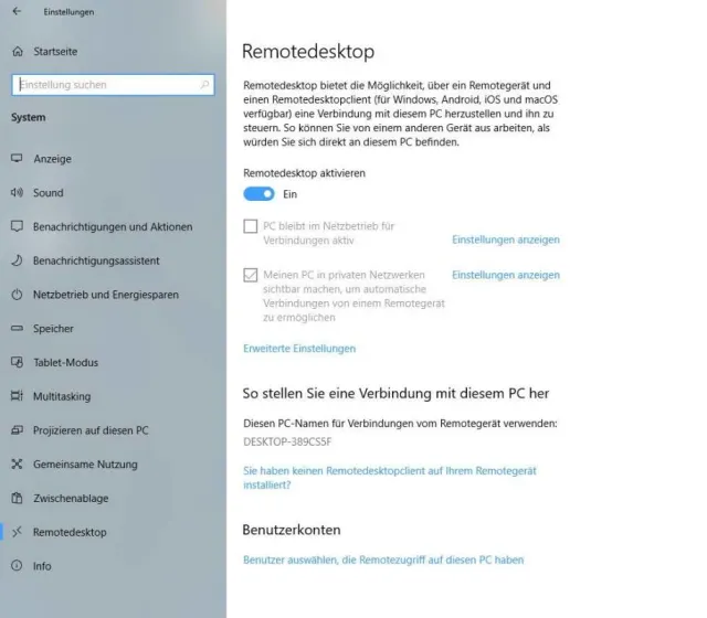 Remotedesktop unter Windows 10 einrichten
