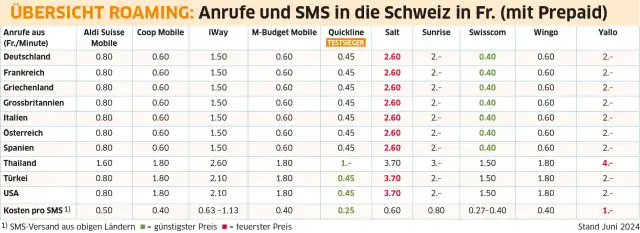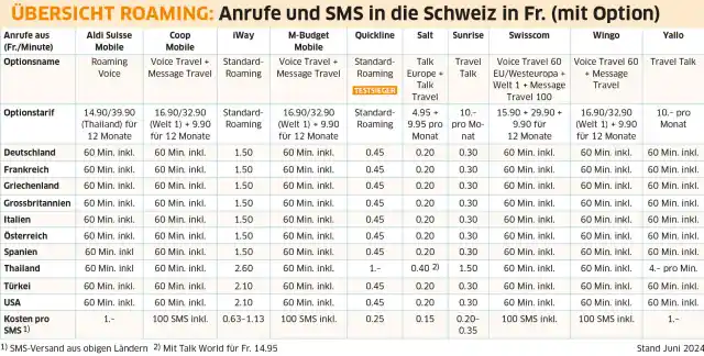 Der PCtipp hat die Roaming-Tarife der zehn Anbieter Aldi Suisse Mobile, Coop Mobile, iWay, M-Budget Mobile, Quickline, Salt, Sunrise, Swisscom, Wingo und Yallo miteinander verglichen. Nachfolgend lesen Sie die Einzeltests. Zum besseren Vergleich beachten Sie bitte auch die Tabellen im Artikel.Aldi Suisse mobile