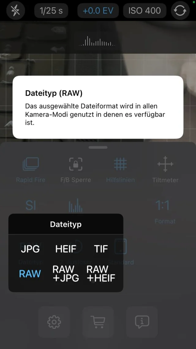 Aber auch ältere Smartphones können mit einer Zusatz-App Bilder im RAW-Format aufnehmen. Für Android-Handys bietet das etwa ProCam X, für iOS die App ProCamera, Bild 3. Beide laden Sie im jeweiligen App-Store herunter. ProCam X kostet ca. 5 Franken, ProCamera gibt es für rund 25 Franken.
