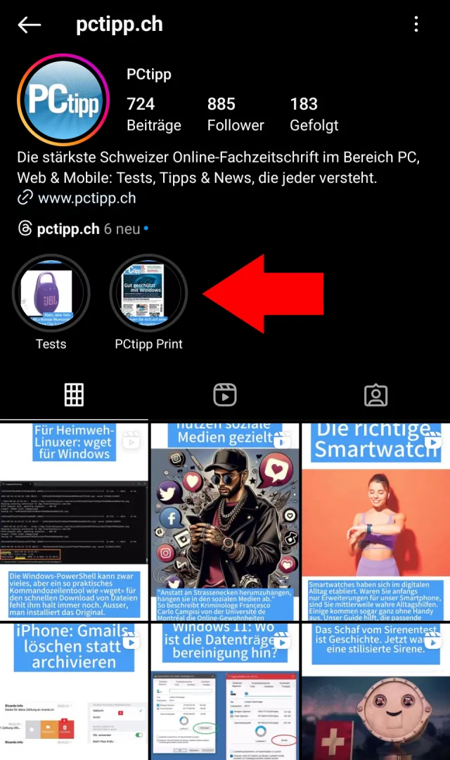 Quelle: PCtipp.ch● Visuelles Portfolio: Zeigen Sie Projekte, Designs oder Kampagnen. Nutzen Sie auf Instagram die Highlights, um Ihre besten Arbeiten dauerhaft sichtbar zu machen, Bild 5.
