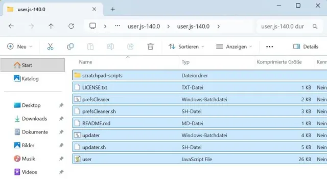 Bild 12: Kopieren Sie per Ctrl+C alle Dateien aus dem Arkenfox-ZIP-Archiv in das speziell angelegte Firefox-Profil Privacy-Modus
