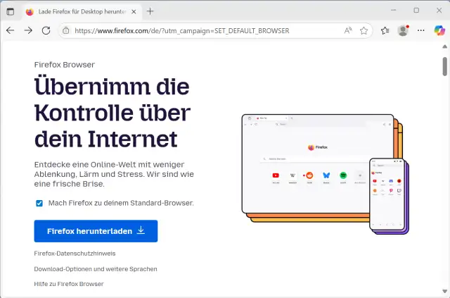 Bild 1: Falls Sie Firefox noch nicht auf Ihrem Rechner installiert haben, dann öffnen Sie zum Beispiel Edge und laden ihn von der Hersteller-Webseite kostenlos herunter