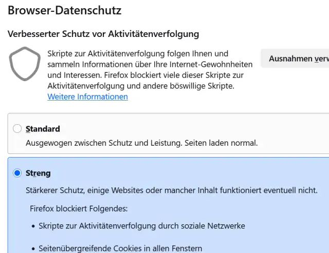 Bild 5: Wählen Sie die Stufe Streng, um den Tracking-Firmen ihre Arbeit zu erschweren