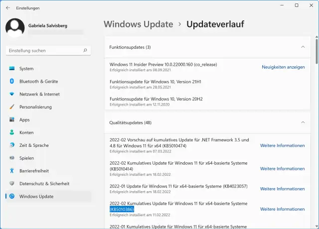 Der Updateverlauf zeigt meistens viel mehr Infos an
