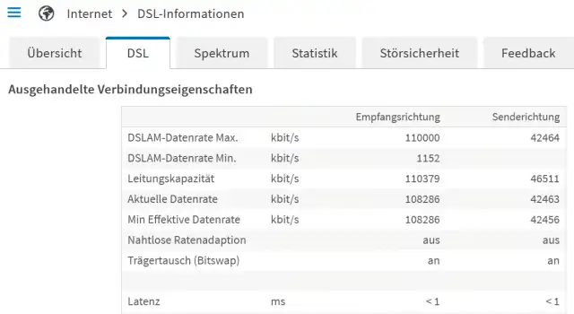 Bild 10: Wichtig ist der Unterschied zwischen DSLAM-Datenrate Max und der Aktuellen Datenrate