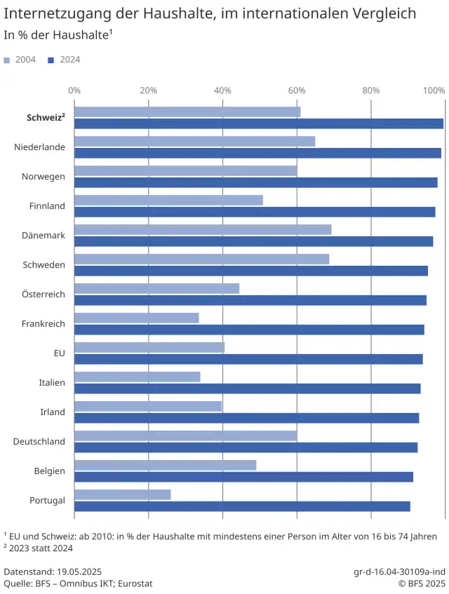 Bild 1: 99,7 Prozent der Schweizer Haushalte hatten im vergangenen Jahr einen Zugang zum Internet