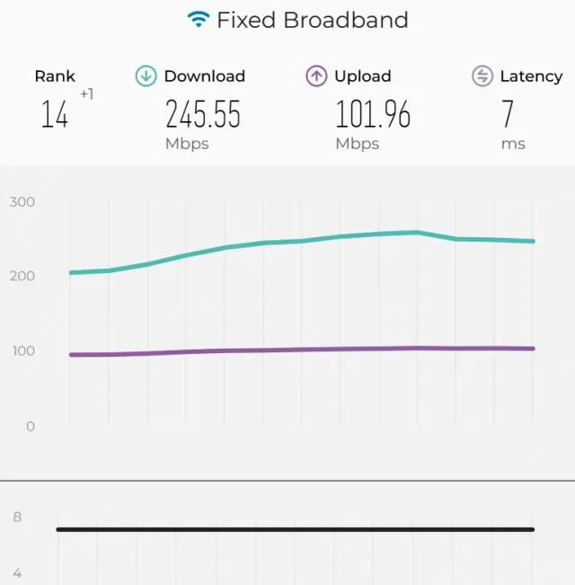 Quelle: PCtipp.chDas erledigt etwa der Speedtest-Anbieter Ookla mit seinem Global Index der weltweit schnellsten Internetanschlüsse. In der August-Erhebung erreichte die Schweiz mit einem durchschnittlichen Download-Wert von hohen 245,55 Mbit/s bei Festnetzanschlüssen den 14. Platz. Im Vergleich zum vorherigen Quartal konnte sie sich damit um einen Rang verbessern. Das ist aber nur ein halber Erfolg. Interessanterweise lag die Schweiz vor einem halben Jahr mit einem durchschnittlichen Download-Wert von damals 257,38 Mbit/s noch auf Platz 9. Die Gründe für die Schwankungen sind unklar, Bild 2.